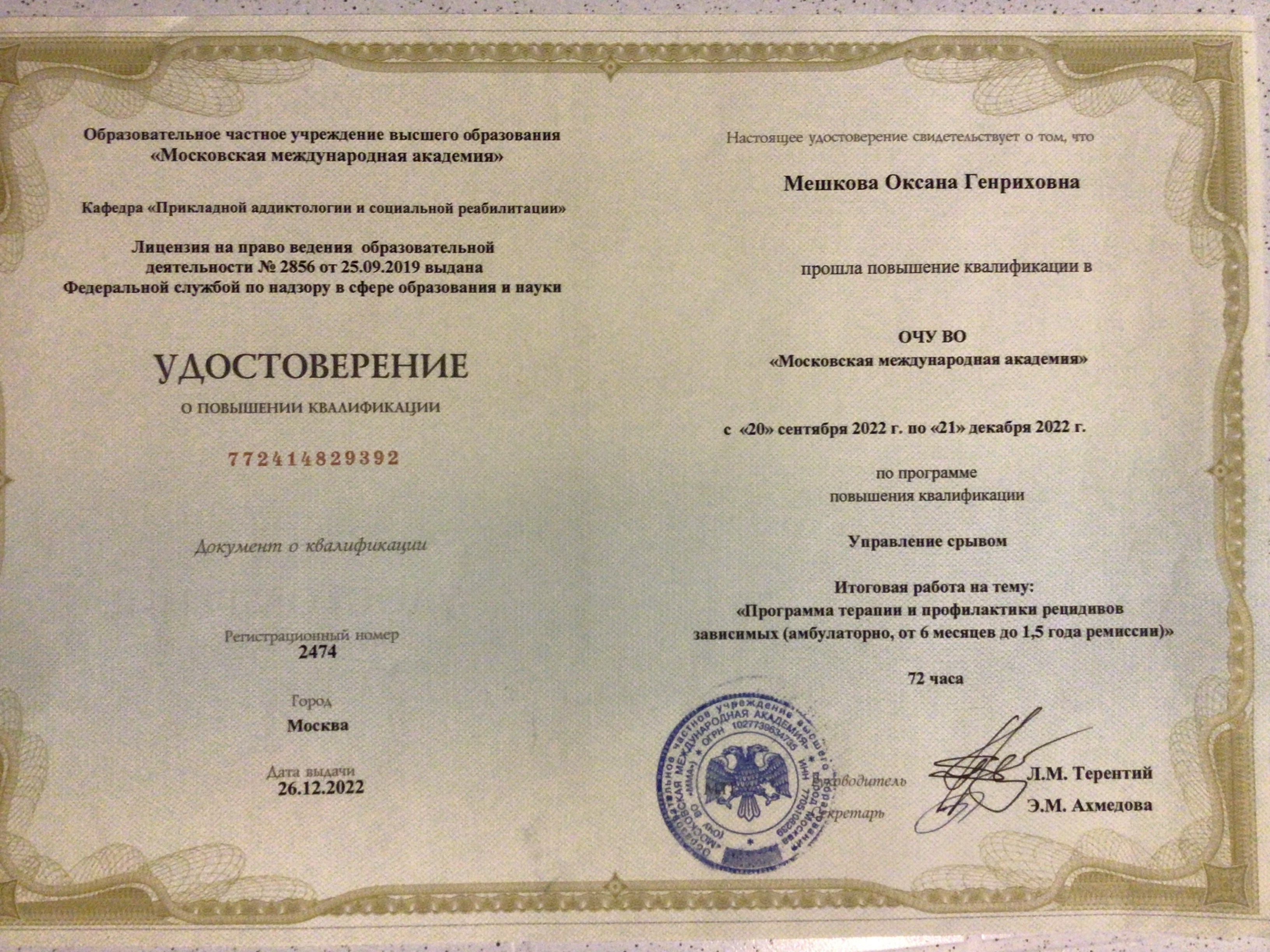 - ПОАНО «Национальный университет современных технологий», 2022, г.Волгоград (2021–2022)
