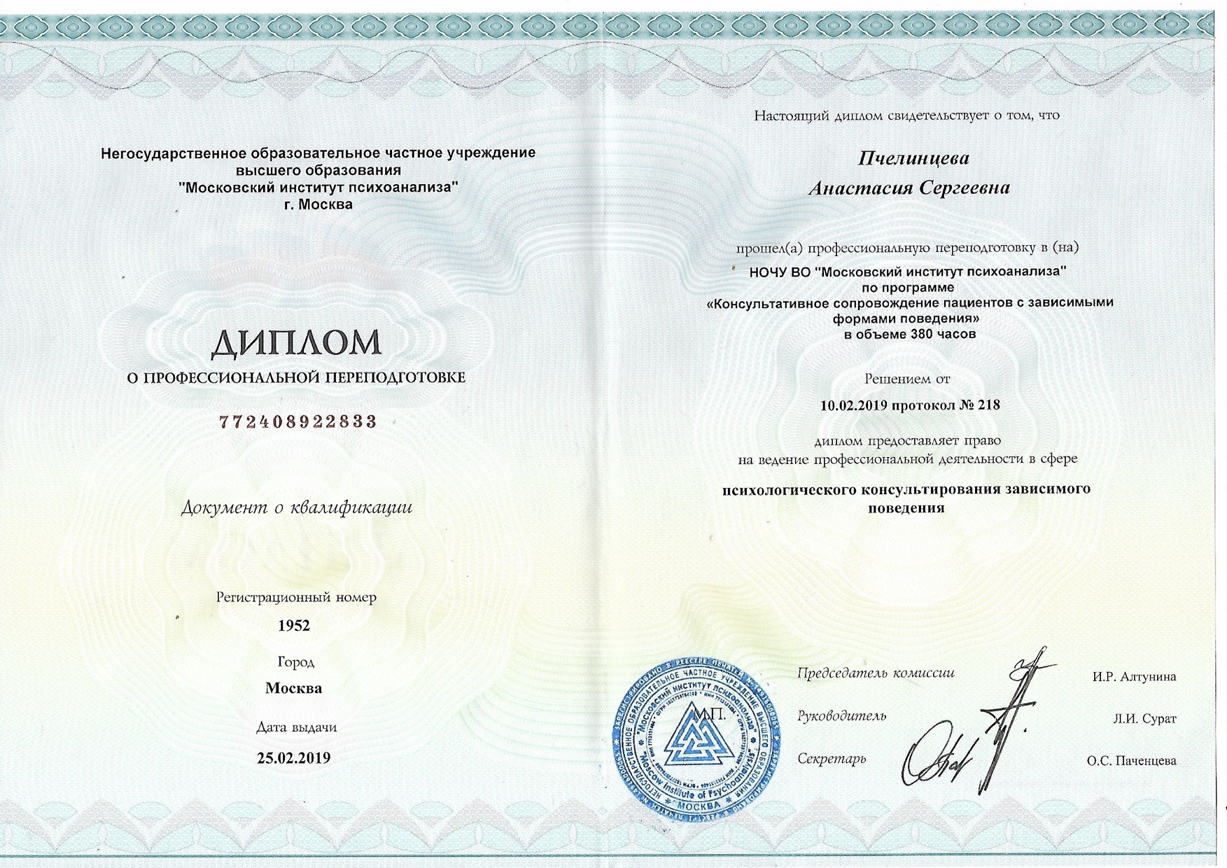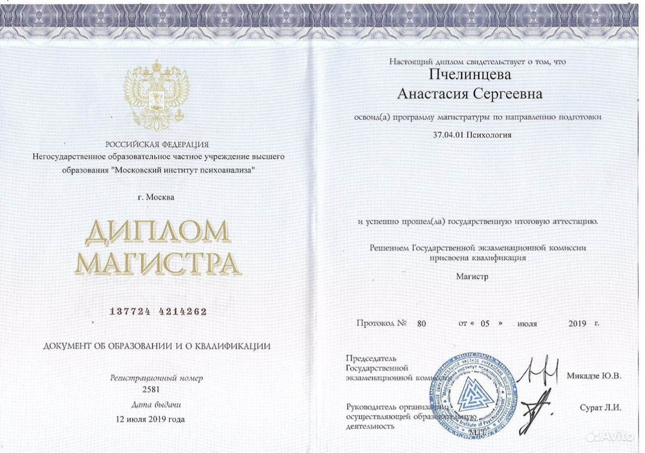 • НОЧУ ВО «Московский институт психоанализа» (2017–2019)